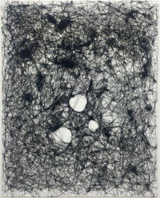 Black threads on canvas by Chiharu Shiota